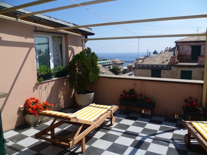 Il B&B è situato nell'elegante quartiere di "Carignano" all'ultimo piano di un palazzo dei primi anni dell'800 affacciato su una terrazza con vista mare.